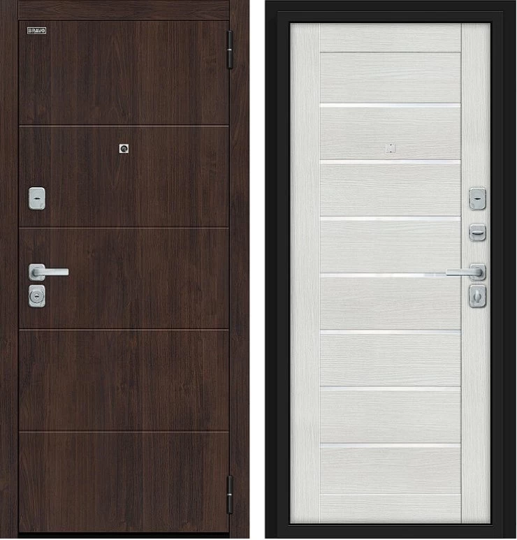 Надежная входная Дверь Браво Прайм/BChrome Almon/Bianco Melinga премиум класса по цене 42 510 руб. Большая толщина стали защитит от проникновения в ваш дом, квартиру или коттедж. Используется очень качественная фурнитура: замки, цилиндры, ручки, защелки. Покрытие и отделка двери изготовлено под внимательным контролем производителя. Дверь имеет долгий срок службы и гарантию.