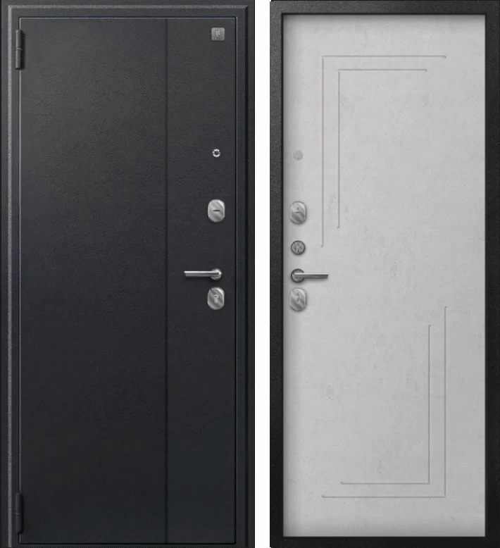 Надежная входная Дверь A-06 черный сатин - бетон светлый премиум класса по цене 32 490 руб. Большая толщина стали защитит от проникновения в ваш дом, квартиру или коттедж. Используется очень качественная фурнитура: замки, цилиндры, ручки, защелки. Покрытие и отделка двери изготовлено под внимательным контролем производителя. Дверь имеет долгий срок службы и гарантию.