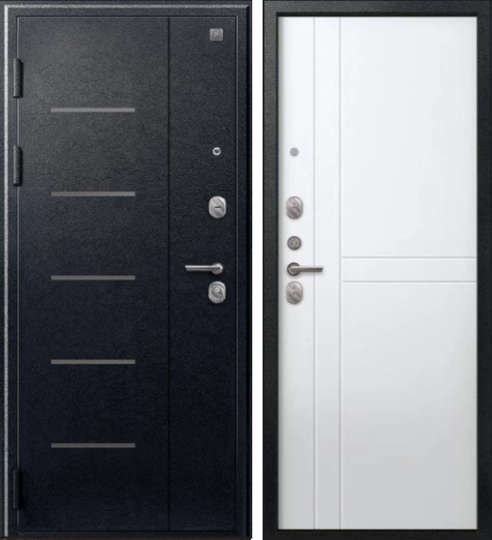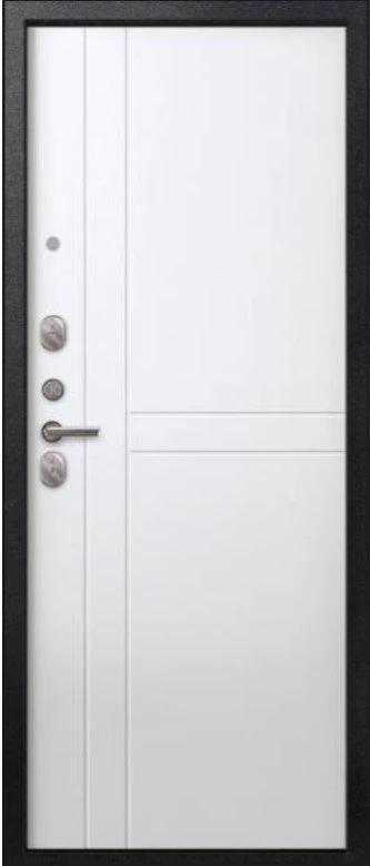 Надежная входная Дверь V-06 Черный муар - Белый премиум класса по цене 41 510 руб. Большая толщина стали защитит от проникновения в ваш дом, квартиру или коттедж. Используется очень качественная фурнитура: замки, цилиндры, ручки, защелки. Покрытие и отделка двери изготовлено под внимательным контролем производителя. Дверь имеет долгий срок службы и гарантию.